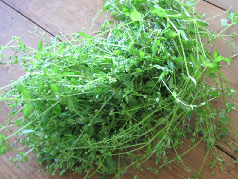 Vitamin A - 300% Vitamin C - 625% Calcium - 121% Iron - 1406% Potassium - 1840mg The substantial levels of vitamins and minerals, tender leaves and delicious mild flavor make chickweed a wonderful super green which we can use just like any other green in our meals. The fresh leaves, stems and flowers can be used. Unfortunately, the plant does not dry very well and loses a majority of its benefits; however, the dried leaf can still be used to make tea and other nourishing infusions to use in our food. If you have access to the fresh use it in your salads, sautéed vegetables, juices, smoothies, sandwiches, green sauces, pesto, soups and stews, baked goods, etc. Refer to the recipes at the end of this article for inspiration. You can also juice it or slightly steam it until it starts to wilt. Then freeze in small portions and use throughout the year when it is not in season.