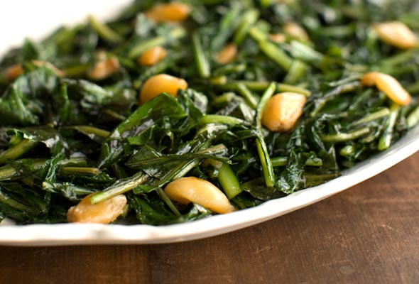 Toss dark green leafy vegetables in hot, garlicky oil for a cleansing -- and delicious -- dish.
