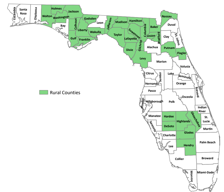 FL Rural Counties Map