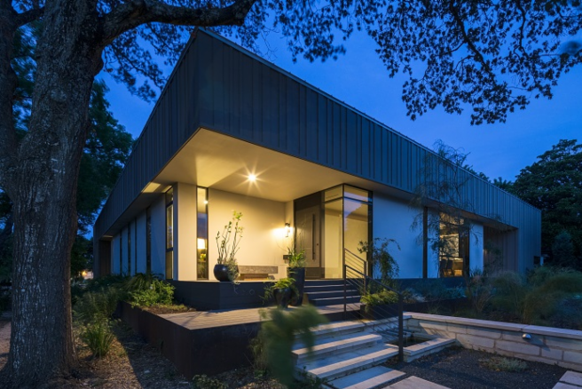- Considered design solutions for aging in place, including an ADA ramp for access into the home, universal design features, and a pier and beam foundation that provides subtle shock absorption for joints.