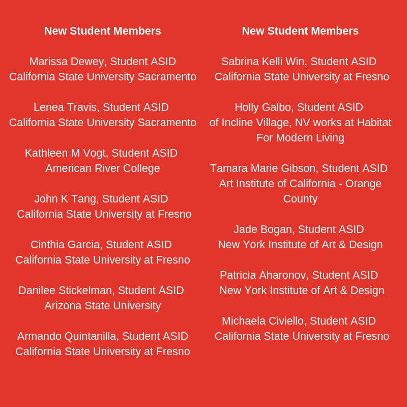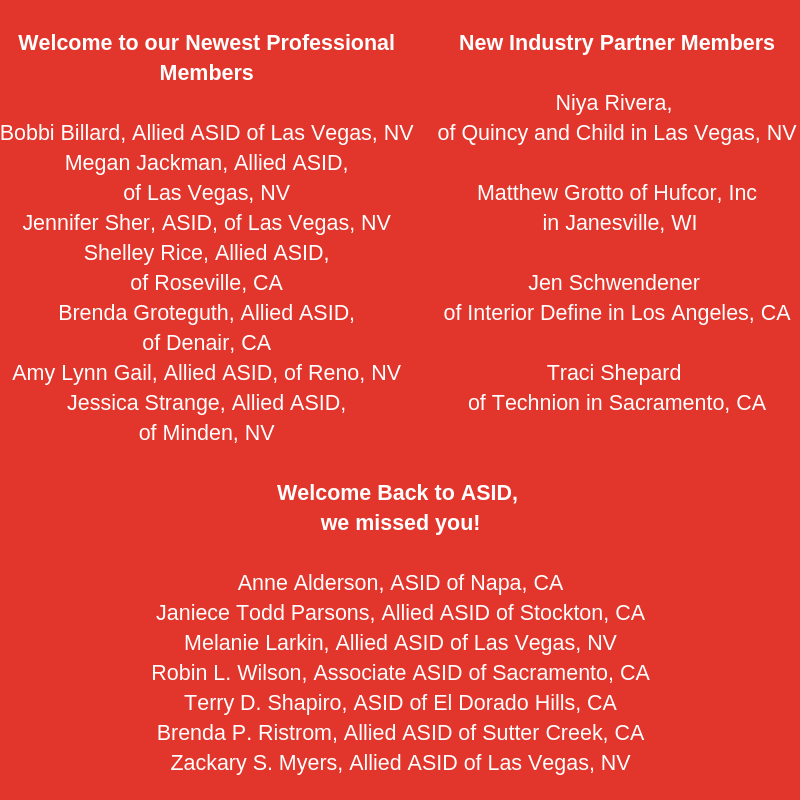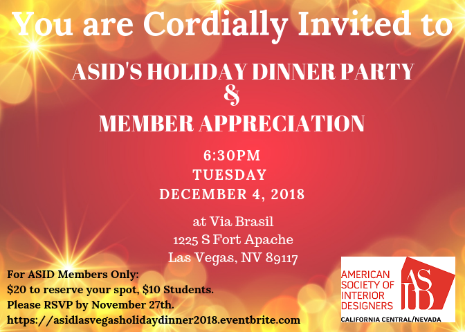 I am the Emerging Professional Chair for our ASID Chapter Board, and recently graduated from UNLV with a degree in Interior Architecture and Design. I am excited about joining the Interior Design field, while focusing on hospitality.