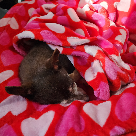 I, and all of my 7 pounds, are now the BIG DOG of the family. I am 18 and a half years old and I like to sleep a lot.