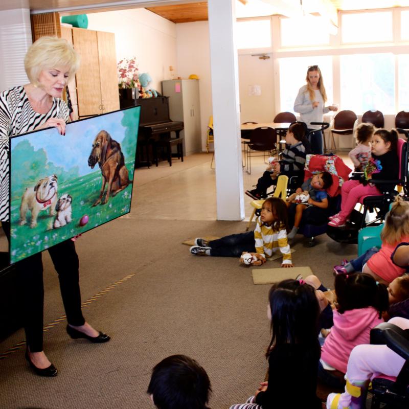 "Sir Winkles" visited children through story time hosted by author Alice Kalomas. Children acted out the stories with their very own Sir Wrinkles plush and were even surprised by a visit from life sized Sir Wrinkles!
