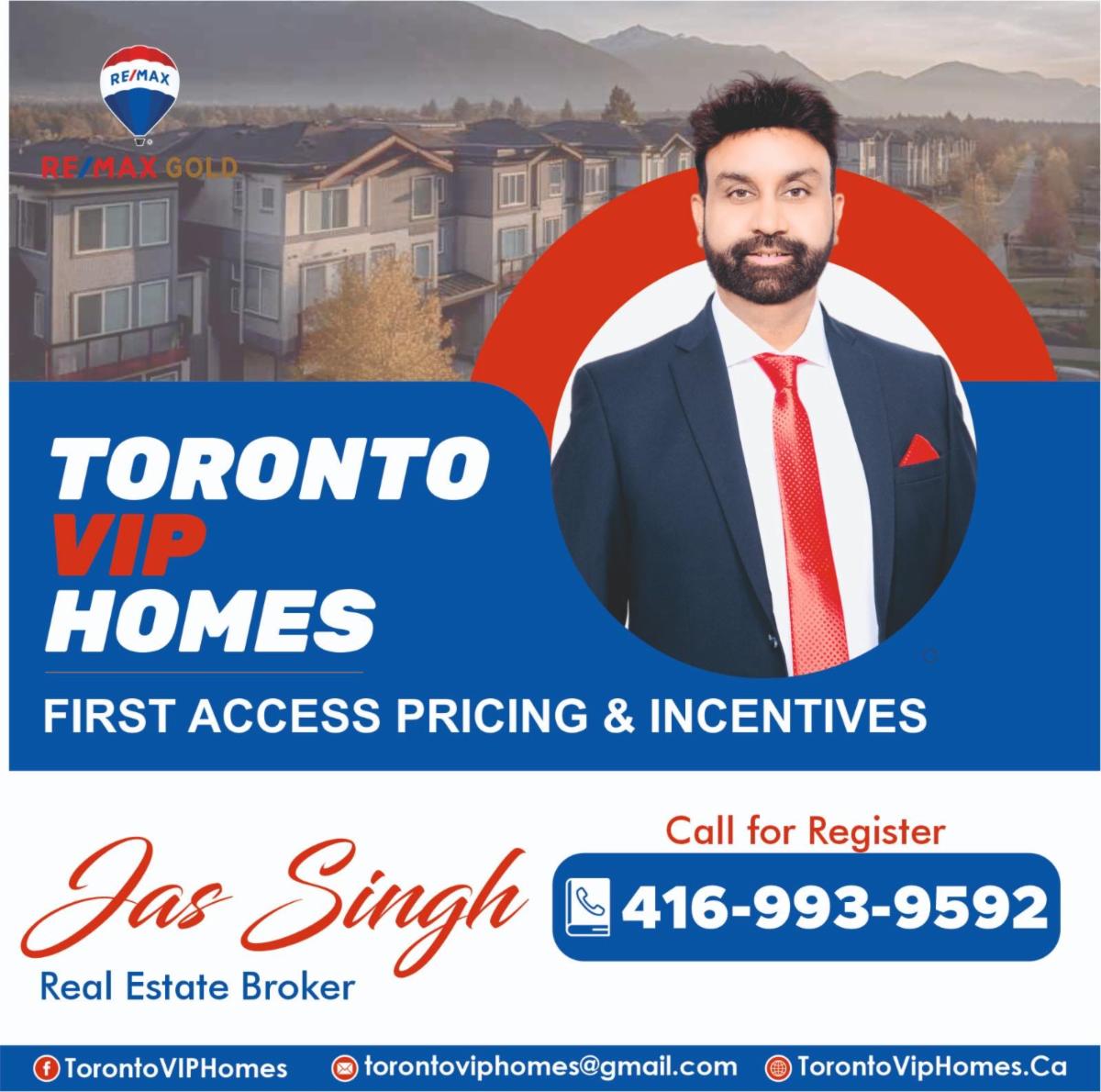 Toronto VIP Homes. Ca I Copyright © 2024, All rights reserved. We do not represent the builder directly, All the Renderings, Prices, figures, illustrations, sizes, features and finishes are subject to change without notice. E.&O.E. Areas and dimensions are approximate and actual usable floor space may vary from the stated area. Layout maybe reverse of the unit purchased. In respect of any Agreement of Purchase and Sale, we highly recommend that you seek legal advice with respect to your rights and obligations thereunder, and to further understand closing process and costs which may be associated’. Not intended to solicit properties, buyers or sellers already under contract. Some conditions may apply.*Government issued Photo ID and cheque book required for booking! Mortgage Commitment letter required after booking*