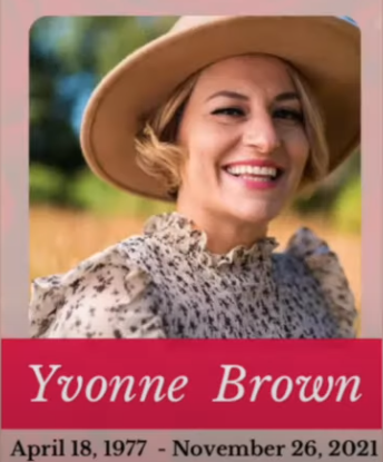 Yvonne Brown was born to parents Nusrat Rahimi Brown and Curtis Owen Brown. She is survived by her children Lyla Phoenix Adams and Samira Love English Adams (Neville Adams), sister Darlene Sagheer, and brothers Kevin Brown and Eric Brown. She earned a M.A. in teaching and a B.A. in English from the University of Maryland.