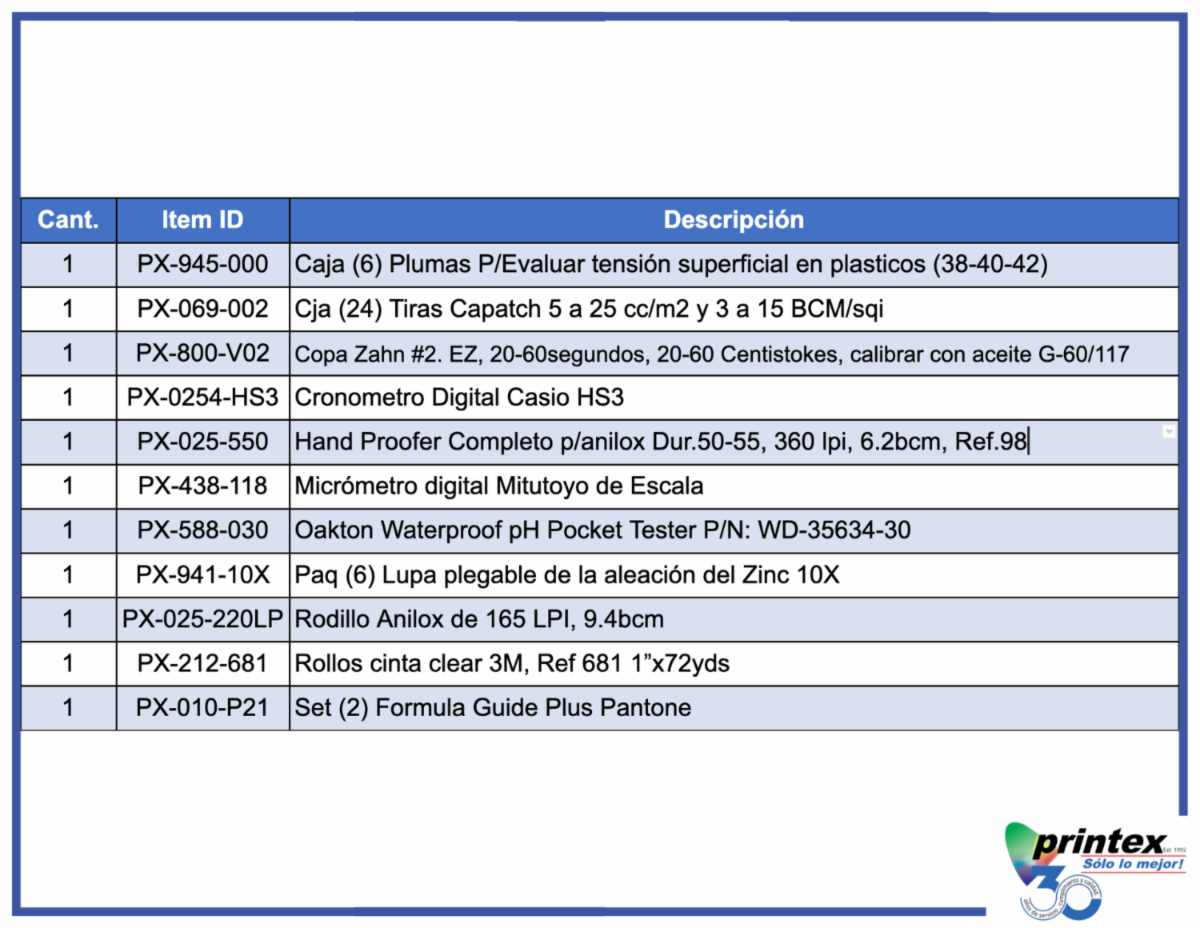 El Flexo Kit Printex incluye: