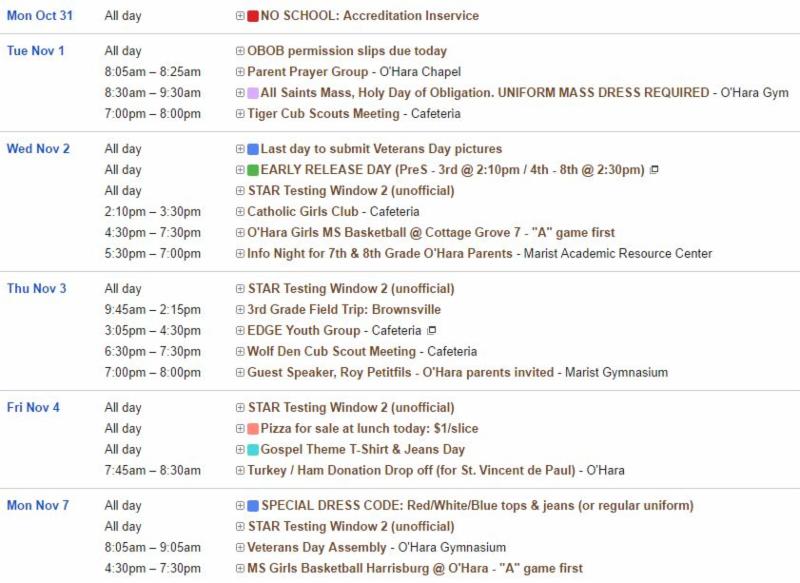 and is a Holy Day of Obligation for Catholics. This means we get to go to church an extra day this week, specifically to celebrate all of the Saints in the Catholic Church. This year at O'Hara, we have Mass on the actual feast of All Saints' Day, which means our Holy Day of Obligation will be fulfilled by coming to our school Mass.