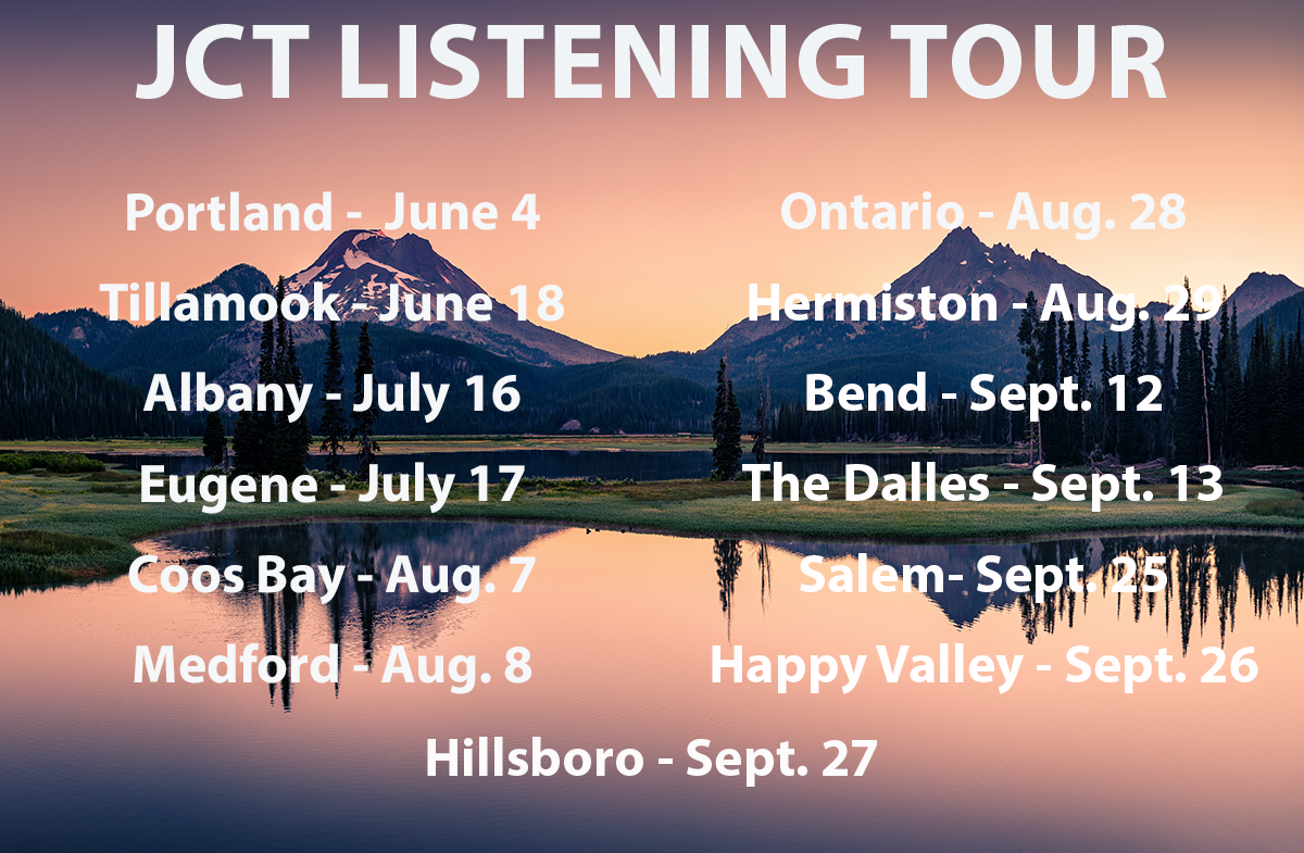 The Joint Committee on Transportation (JCT) released final dates for a 2024 listening tour in preparation for the consideration of a new transportation funding package during the 2025 legislative session. Listening tour stops are expected to include roundtable discussions with local leaders, a site tour, and a public hearing.