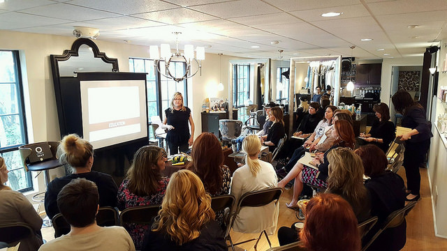 OWAY company trainers and stylists spent a full day with us and completed training for the whole Elle Salon staff on their full line of products, including their coloring products. We enjoyed a delicious catered luncheon by