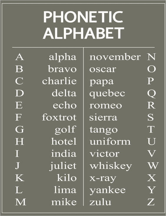 The military phonetic alphabet: