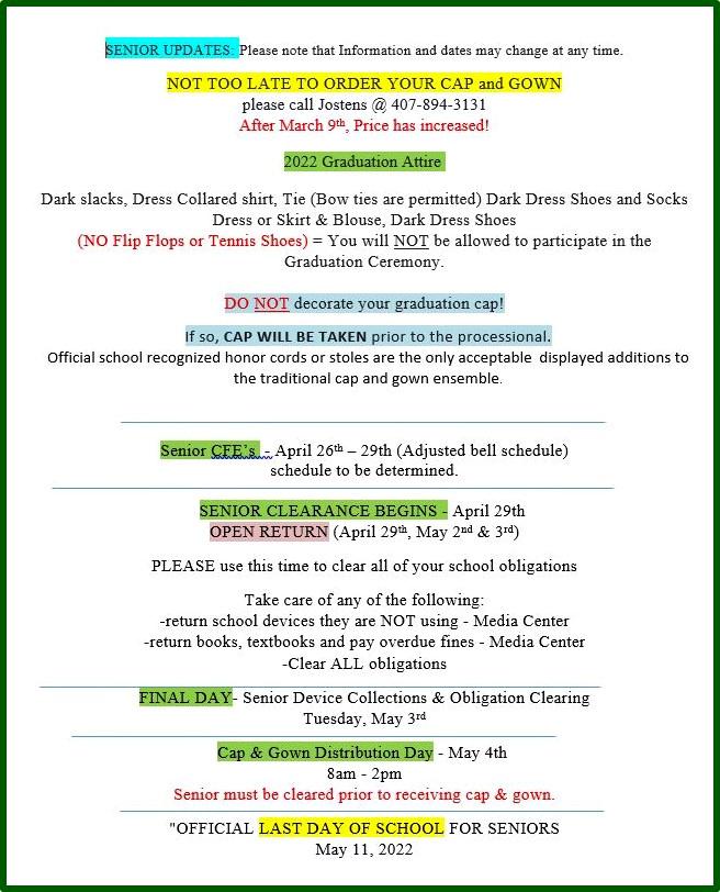 Attention All SENIORS – Important Information – Please Read