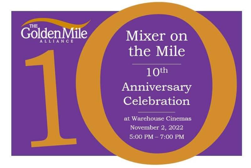 It's time to celebrate a decade of supporting the City's Golden Mile! Join the Golden Mile Alliance on Wednesday, November 2nd for the 10th Anniversary Mixer on the Mile.