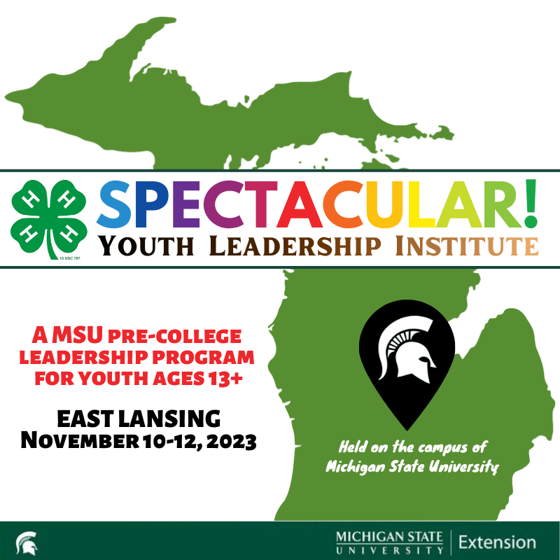 The Michigan 4-H Spectacular Youth Leadership Institute is sponsored with a grant from the Michigan 4-H Foundation.