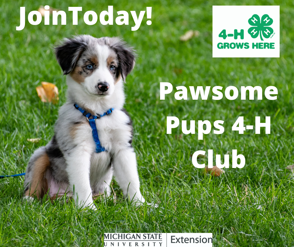Do you like dogs? Interested in learning how to train your dog? Come and have some fun while learning about dog agility, obedience, and showmanship! This club hosts workouts, games, dog demonstrations, team shows, and more! Join the Pawsome Pups 4-H Club today! The club is open to youth ages 5-19. No dog experience necessary.