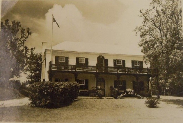 Hurstholme with its verandah and lovely grounds was the home of the Maple Leaf Club in the 1940s. (Llewellyn/Paschal collection, Bermuda Archives) | |