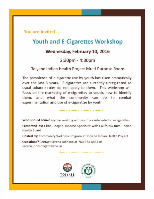 Youth and E-Cigarettes Workshop - Wednesday February 10 at 2:30pm