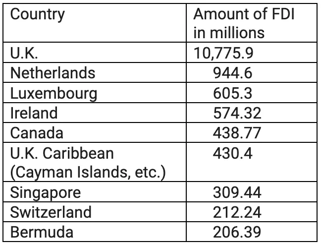 Besides the Netherlands, where would you assume most U.S. capital is invested? Maybe China, Mexico, Brazil, Germany, or Saudi Arabia? You would be wrong on all accounts. Here are the top nine countries that received FDI outflows from the U.S. in 2022: (Chart above).
