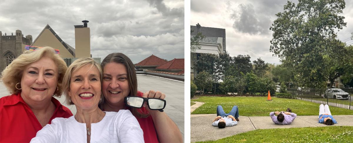 Yesterday, members of the SCAPC staff sought out the best spots to view the eclipse. Lynn, Hallie, and April took to the church roof, and Chris H., Chris C., and Michele (with Ashley photographing) had more luck viewing from the Land Building lawn.