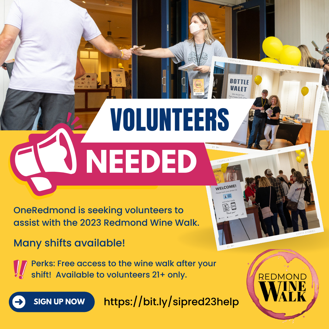 Join us for our second annual Redmond Wine Walk at Redmond Town Center! This year's lineup features 18 local wineries for your enjoyment. Tickets are now on sale for $35 in advance and will be $45 at the door.