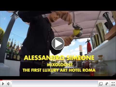 On the roof of the hotel overlooking a historic neighborhood adjacent to the Tiber, Alessandro Simeone is busy creating what will become legendary cocktails for the well-heeled crowd seated on banquettes taking in breathtaking views of the eternal city.