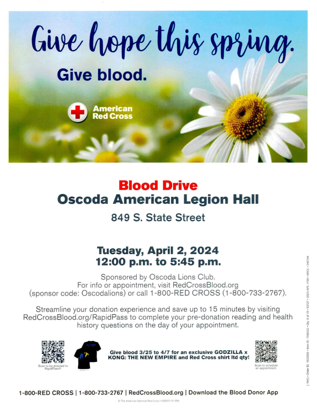 If there is someone out there that you know who is in need of food, there is a free food pantry available at the United Methodist Church in Oscoda. Located by the entry doors nearest to the church parsonage.
