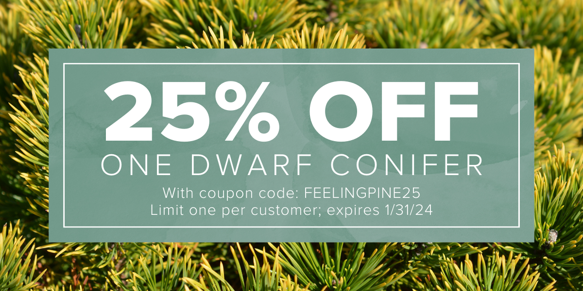 We can’t wait to show you what’s looking fresh and colorful at our Garden Centers. Visit us in store and receive 25% off one dwarf conifer (coupon below)—it doesn’t get more PNW than that!