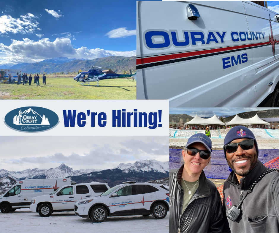 Ouray County EMS is looking for 3 paramedics - the right candidates must be fully licensed in Colorado or able to transfer their license. Driver’s license, ACLS and PALS certification are also required. Candidates must be able to work independently in diverse situations and be willing to work with volunteers of all skill levels. Qualified candidates will be held to a high standard of patient care and must be able to treat co-workers and the public with respect, dignity and compassion.