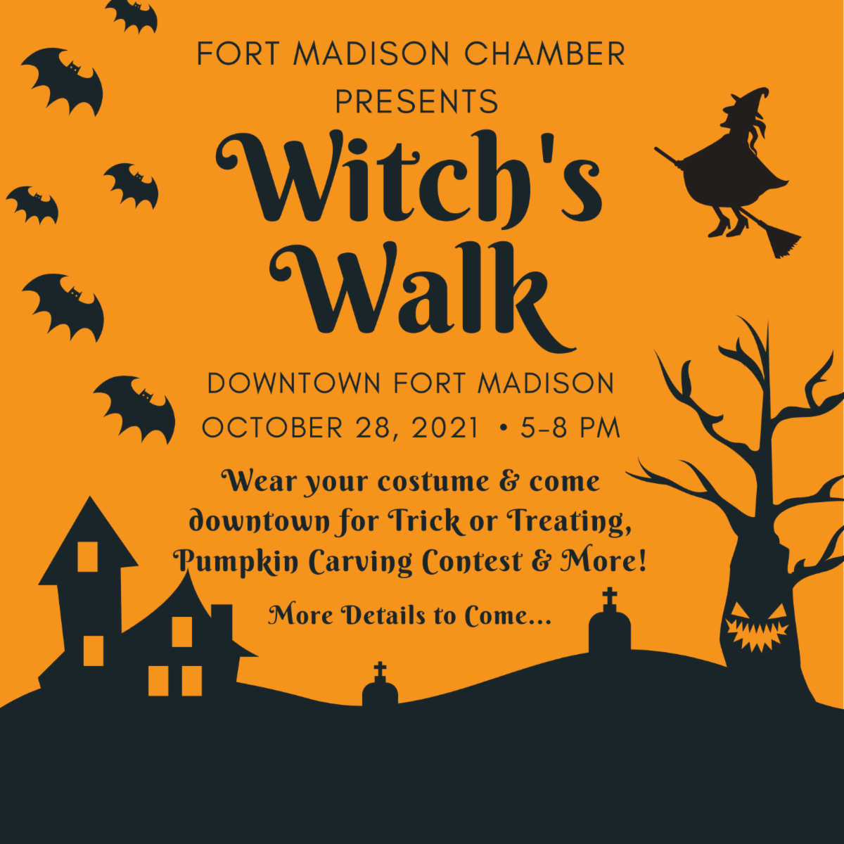 "HALLOWEEN IN OLD SETTLERS PARK" ON OCTOBER 30TH FROM 2-5 PM. PLEASE REGISTER SOON IF YOU ARE A FAMILY OR BUSINESS WHO WOULD LIKE TO GIVE OUT TREATS BY FRIDAY, OCTOBER 20TH. A PICNIC TABLE WILL BE FURNISHED FREE OF CHARGE FOR YOU TO DECORATE AS YOU WISH. YOU MAY ALSO BRING YOUR OWN SET-UP, BUT PRE-REGISTRATION IS REQUIRED.. CALL SHERYL DECKER TODAY AT 372-7813 OR BY EMAIL AT jsdecker67@gmail.com - OR TEXT YOUR NAME, AND PHONE NO. TO 319-470-7813 TO PRE-REGISTER.