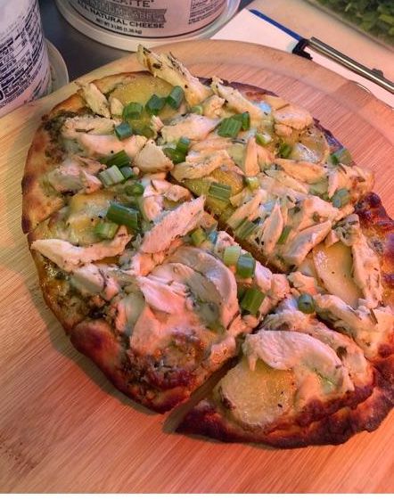 Our specialty pizzetta this week is Basil Pesto with mozzarella and fontina. $12