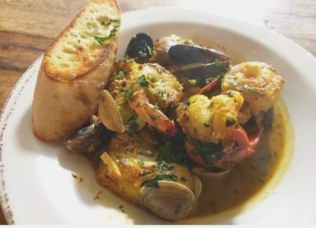 *Cioppino with salmon, shrimp, clams, mussels, crayfish and roasted tomatoes in a saffron broth with grilled bread $28