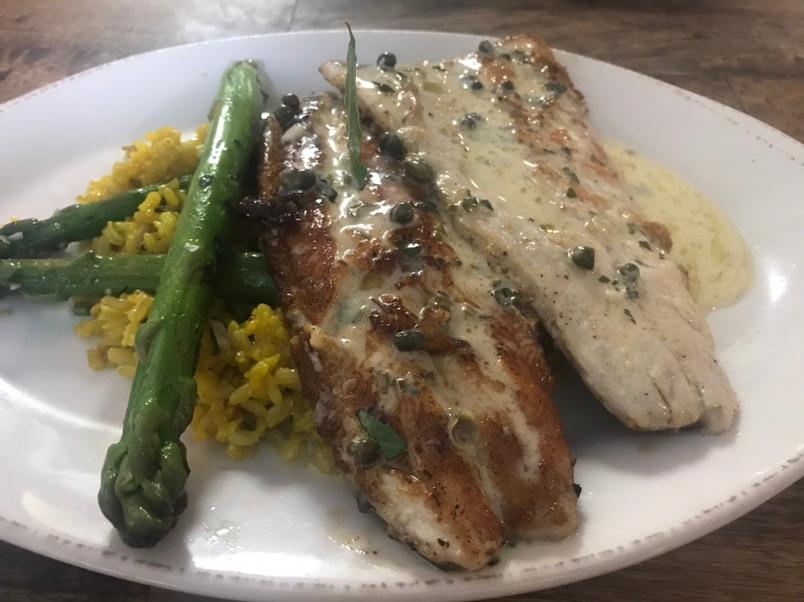 Rainbow Trout with Provencal sauce on angel hair pasta, fresh seasonal vegetables $24