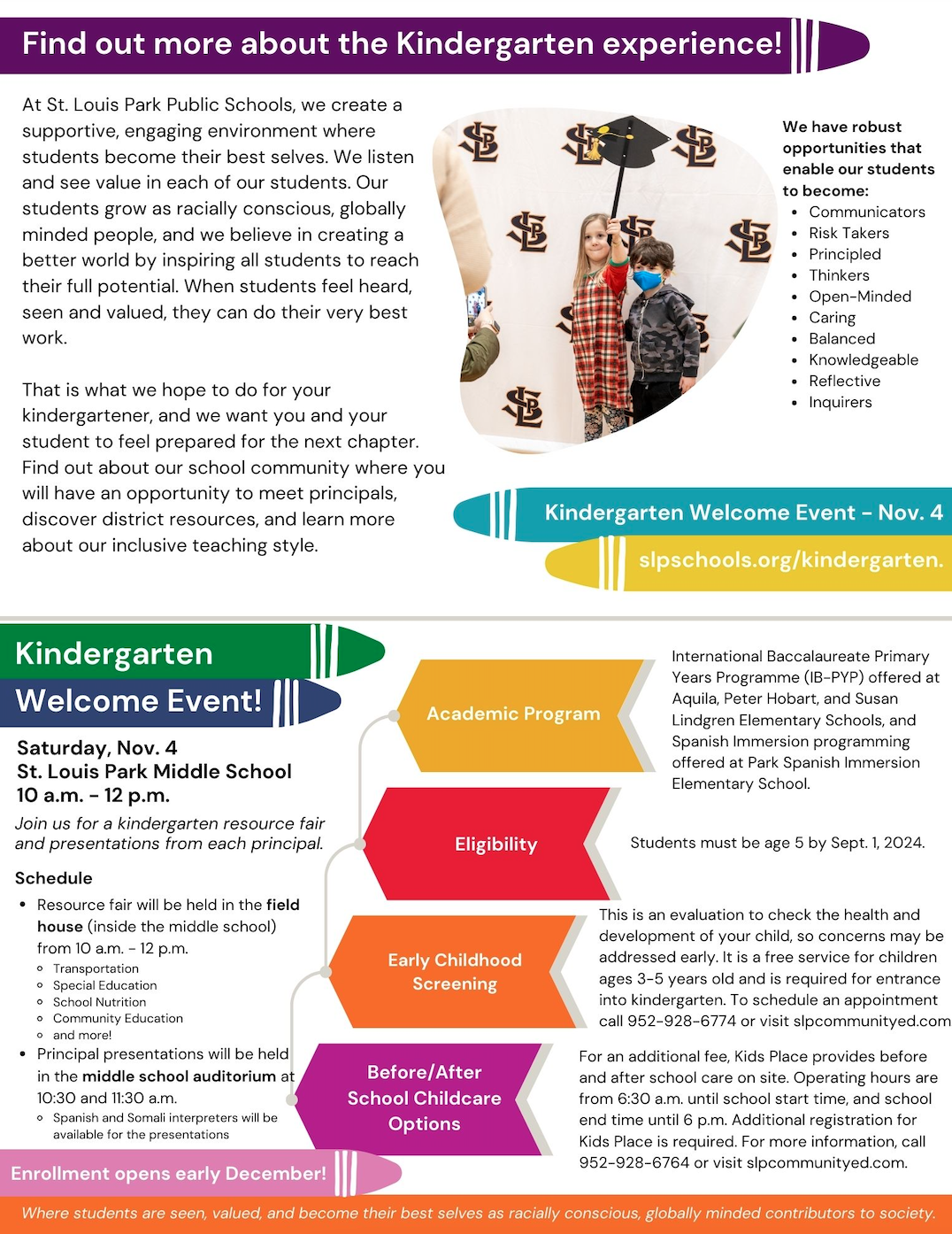 Find out more at slpschools.org/kindergarten