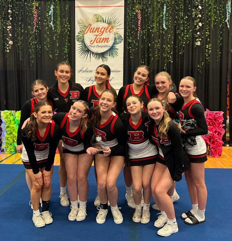 Congratulations to Ballard Cheer who participated in Jungle Jam Saturday, Dec. 2 at Auburn Mountainview High School. Team Black won and qualified for State; Team Red came in second place.