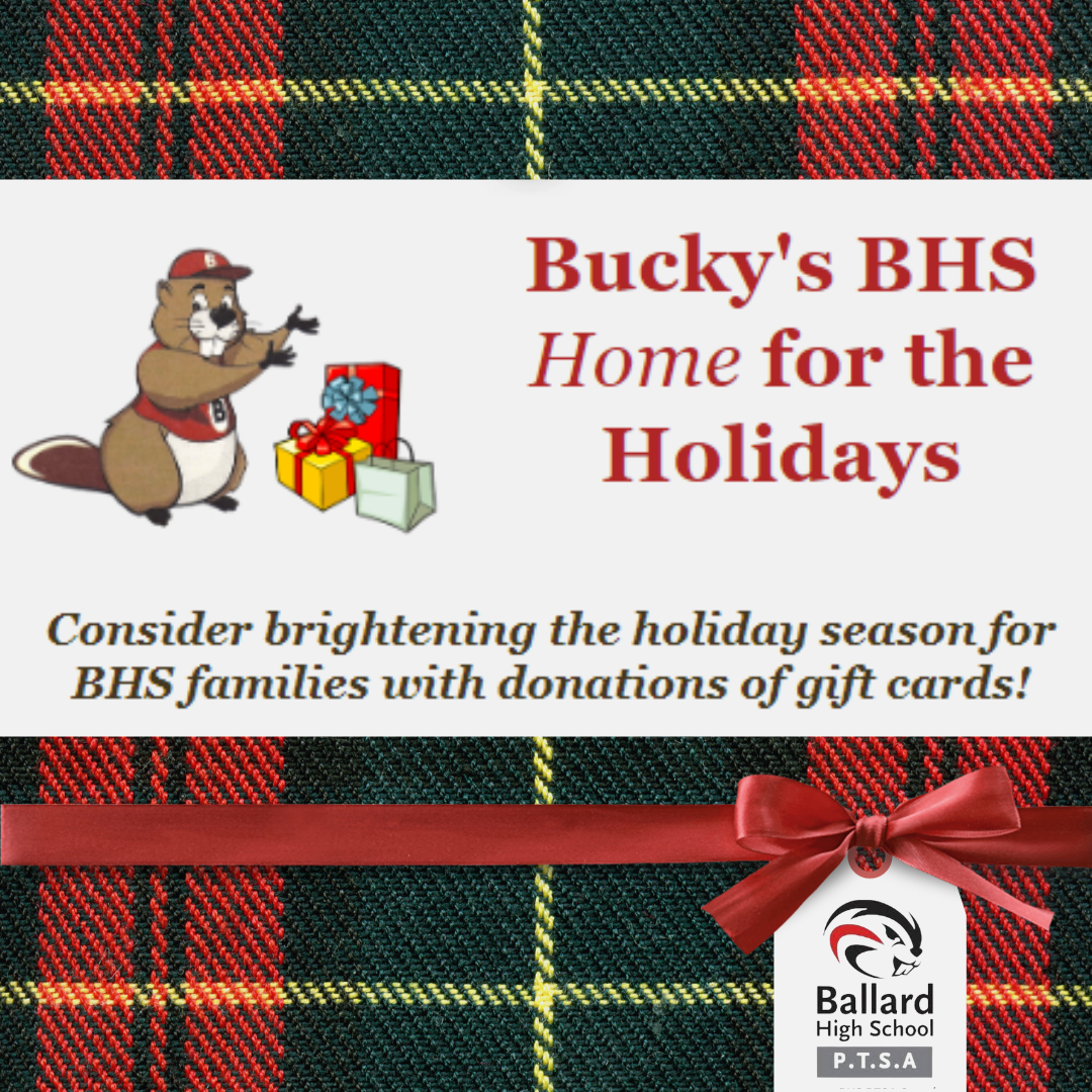 Bucky’s Home for the Holidays is a partnership between the Ballard High School PTSA, Ballard High School Foundation, Ballard Teen Health Center and Ballard High School staff.