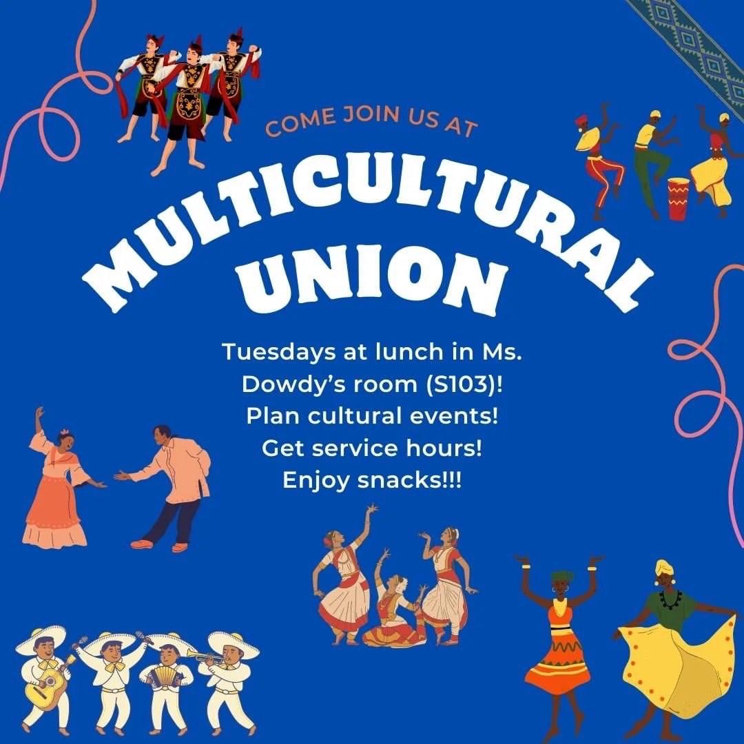 | Join the Multicultural Union (MCU) for a good time, snacks, and event planning! Get service hours too. MCU meets Tuesdays at lunch in Ms. Dowdy's (S103). Graphic c/o and follow @ballardmulticulturalunion | | |