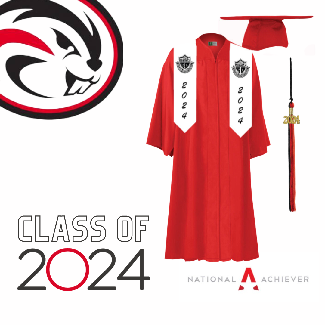 Choose a Cap & Gown Unit (Cap, Gown, Tassel, Stole) or scroll down the National Achiever page to order individual items. Cap and gowns will be delivered at school in the spring. Announcements are sent to purchaser's home.