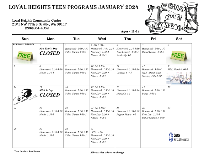 Loyal Heights Community Center Teen Program | The Loyal Heights Community Center Teen Program offers after-school and summer activities for youth ages 11-18 years old. Opportunities include pre-employment training, employment opportunities, service-learning/volunteer opportunities, out-of-school time programs, fitness, social recreation, and more! | |