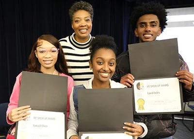 The We Show Up Awards ceremony honored 12 Black students who continually pour their energy into their academics, their school, the community, and their future. Each student was recognized for their work in Kingmakers, their school’s Black Student Union, WHOLE Mentoring or AAMA’s Family Support work. Full details.