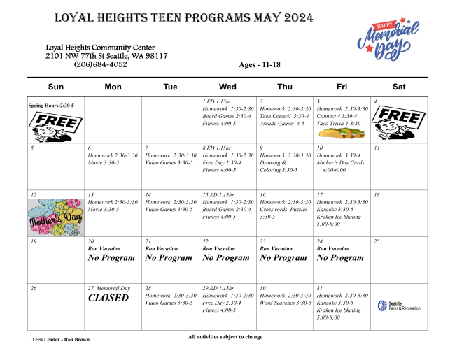 | Loyal Heights Community Center Teen Programs | |