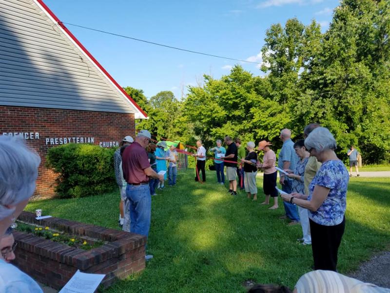 A group of about 25 people gathered June 28 for a dedication ceremony for Spencer Presbyterian's recently installed solar panels.