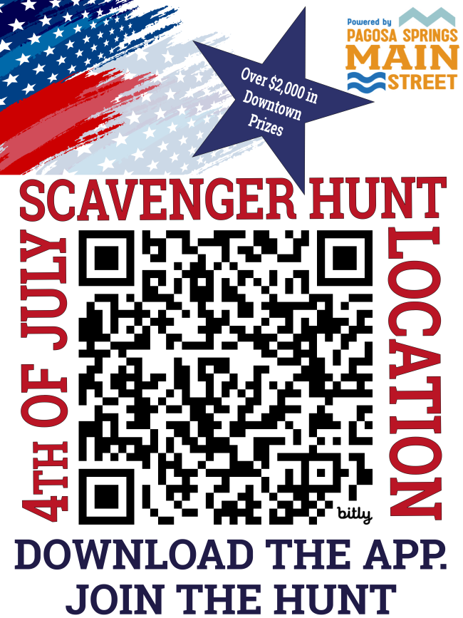 Join us in celebrating Independence Day with a scavenger hunt that brings our community together and highlights the unique charm of downtown Pagosa Springs. We look forward to seeing you there!