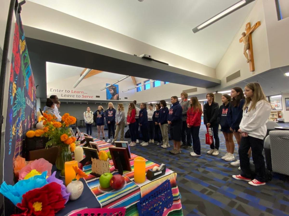 On Wednesday, November 2, 2022 several members of the Campus Ministry team and other SJM students led a prayer in honor of those who have passed away. The Spanish classes helped in setting up a beautiful "ofrenda" together in dedication to our ancestors. | |