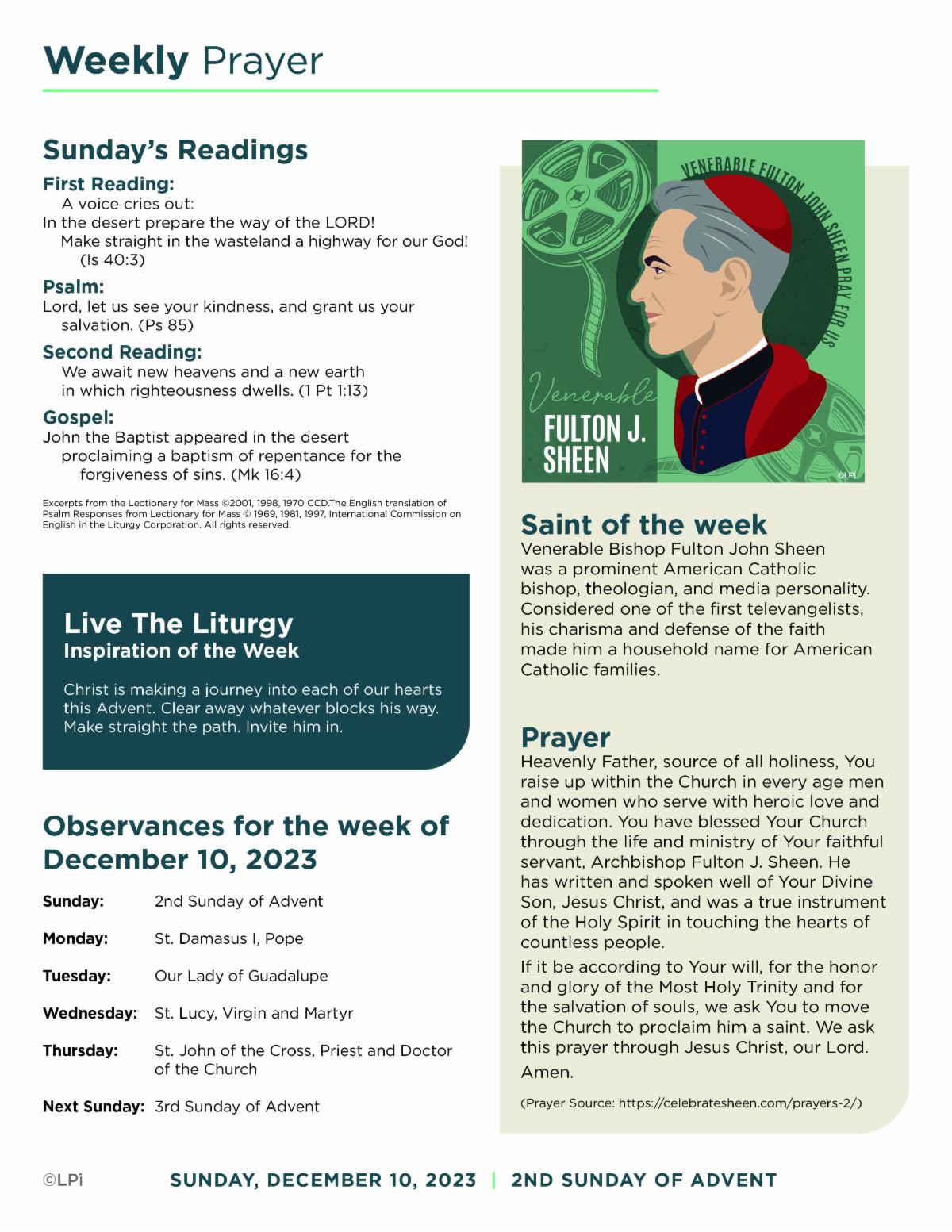 On Wednesday, December 20th at 6:30 p.m., we will celebrate the Sacrament of Reconciliation with several priests from around the area. We will begin with a prayer service and then everyone has an opportunity for individual reconciliation. Please come and invite a friend. For those who have been away for awhile, you will discover that it is a life-changing experience. Each Saturday, we have confession from 3:00 p.m. to 3:45 p.m. and from 2:30 p.m. to 3:45 p.m. on Saturday, December 23rd in the Church.