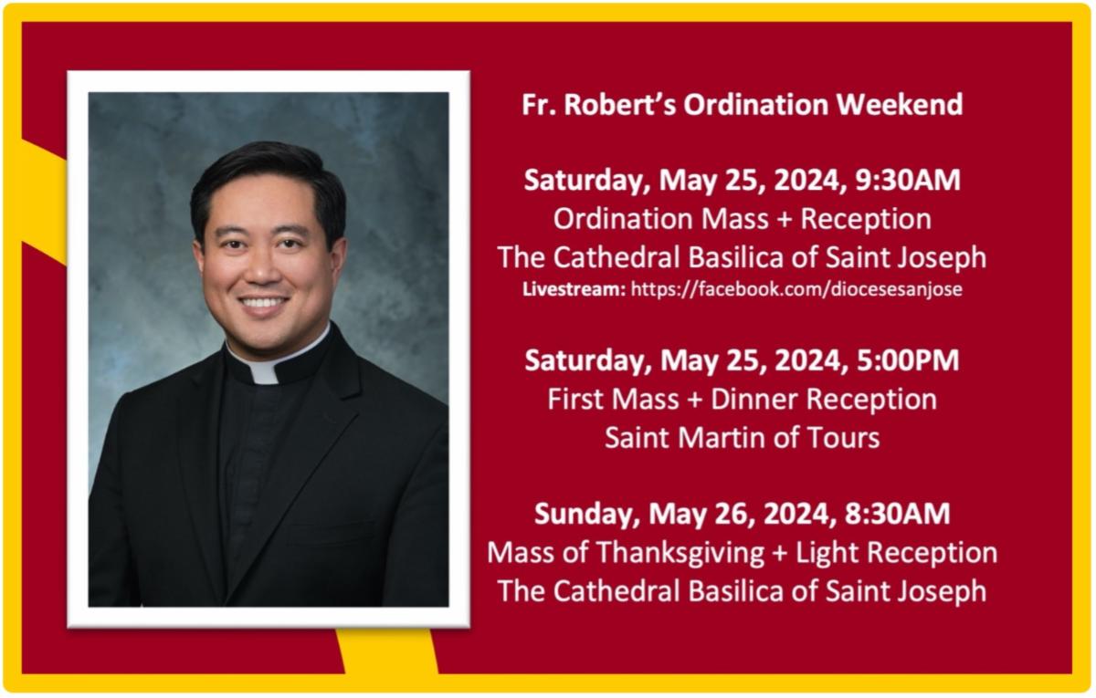 In my second year of seminary, the Office of Vocations implemented the “Adopt-A-Seminarian” program through which I was matched with you. It was a providential pairing as my confirmation saint is St. Anthony of Padua. Over the years, I’ve come and visited and prayed with you. You have supported me through prayers and by coming to events like Revs vs. Sems and my ordination to the diaconate last year. This year, on May 25, 2024 at 9:30AM, I will be ordained to the priesthood by Bishop Oscar Cantú. Please come and join me if you are able to share in this joyful occasion. I will also have my first mass at my home parish at Saint Martin of Tours in San Jose, that same day, Saturday, May 25, 2024 at 5:00PM followed by a reception in the parish gym. Please come and enjoy the celebration.