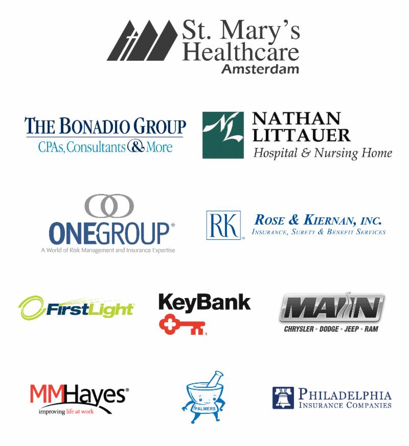 We are grateful for everyone who made this event possible, including our wonderful sponsors: OneGroup, Nunn Medical Group, Rose & Kiernan, Hill & Markes, Hometown Health Centers, Miracle Ear, Bonadio Group, Kingsboro Lumber, Prudential, Strategic Benefit Services, Antonucci's Wholesale, Ballston Spa National Bank, Bunkoff General Contractors, Steve and Kim Cirillo, Dowd Family, EBP/DSC Supply, Fulton County Electric, Galleria Flooring, Northern Electric, Builders First Source - Johnstown and R.H. Crown Co.