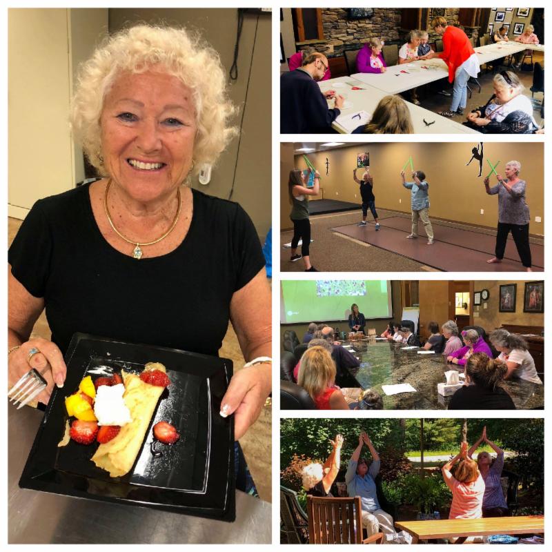 We kicked off the first day of summer (June 22) with our largest crowd yet at the Summer Senior Soirée! Participants not only enjoyed a delicious lunch, they took part in a wide range of activities, from outside yoga and necklace making to classes on essential oils, Photography 101 and how to make scrumptious strawberry crème crêpes.