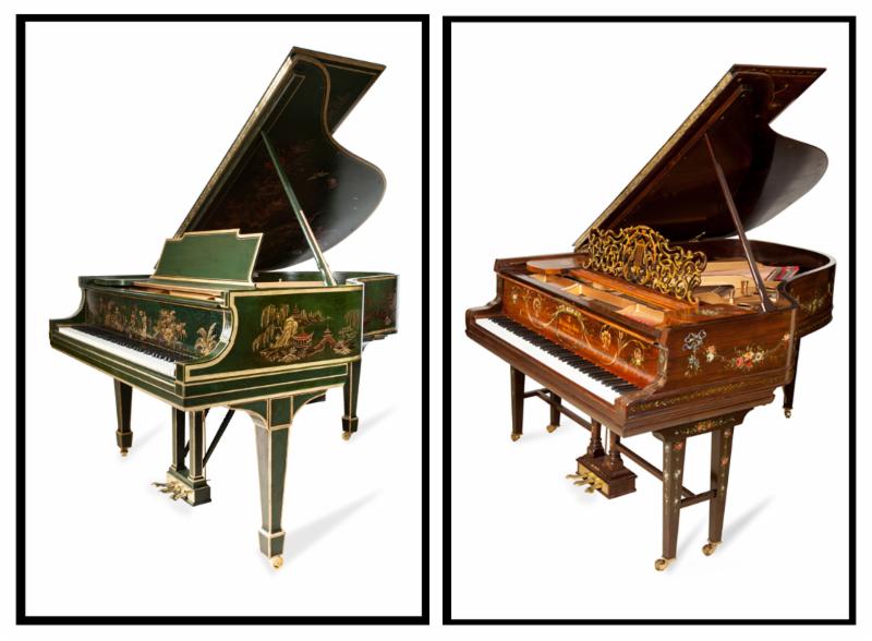 In addition to the Prince's Love Piano and the Green Chi Steinway, both of which were evaluated by art historians, Sonny's Collection also includes several hand-painted chinoiserie-style pianos, luxury Chippendale-style Steinways, a Victorian Steinway, a King Louis XV Steinway, a Marshall & Wendell Spanish Renaissance-style baby grand and many more. When Sonny works with interior designers he is often asked to customize a piano to match a specific decor sometimes with original colors and designs, or to create a specific work of art on the piano that sometimes includes gold plating and even gems, See photos and video tours of the full collection here