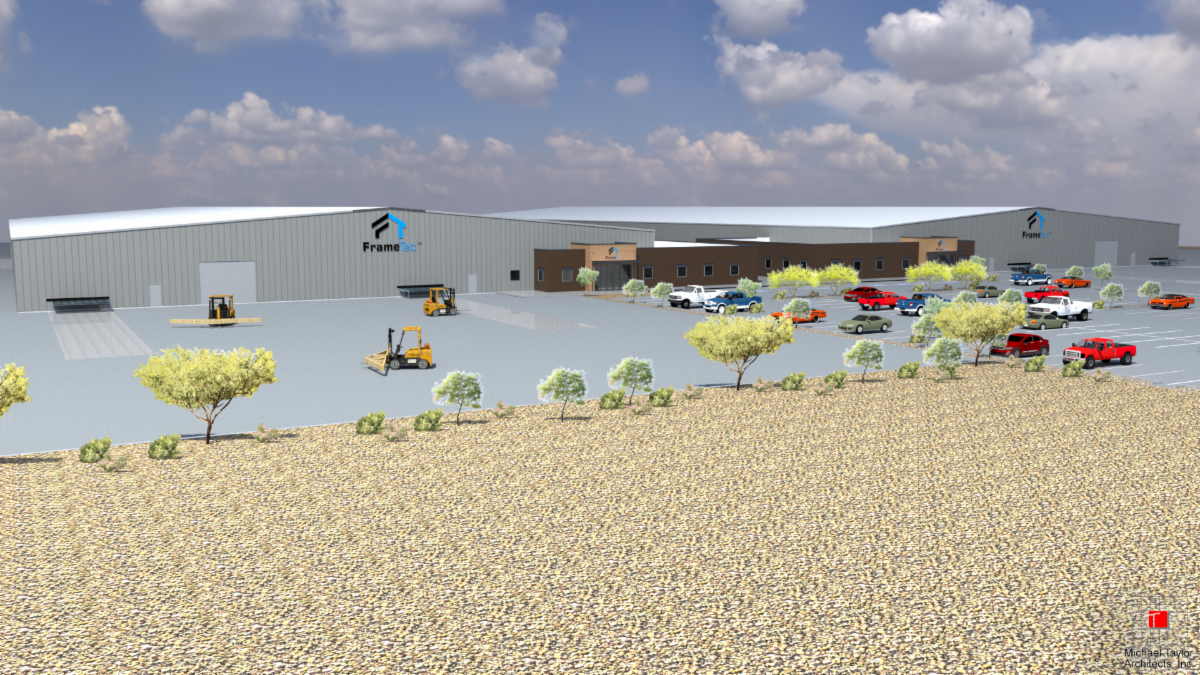 | A conceptual rendering of FrameTec's new factory being proposed in Pinal County, south of Phoenix. | |