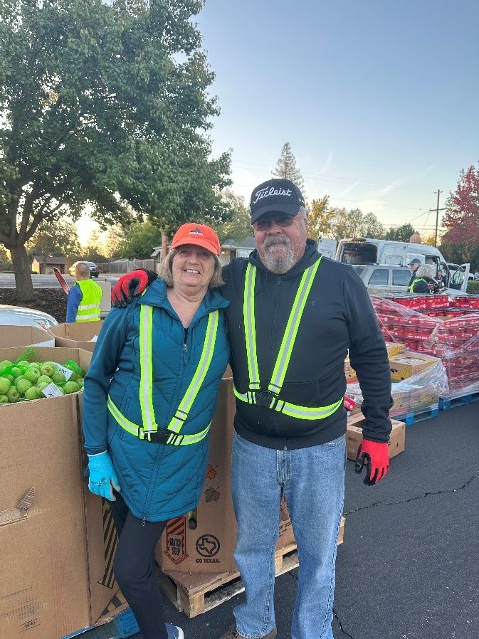 Although not native Californians, they grew up in Southern California in the 1950’s and 1960’s. They both come from working class families (2 parents and 5 kids in both families). They got married young and are now working on their 54th year of marriage. They raised 4 kids, 2 boys and 2 girls – all college grads. And they have 3 grandkids – 2 live in New York and 1 in Oregon. Steven is a Vietnam Vet who attended college under the G.I Bill and has been retired for 13 years. His hobby is golf, which he gets to play normally every Monday or Tuesday with a group of fellow retirees. Doreen was a stay at home mom and homemaker. Her hobbies include genealogy and arts and crafts. They have lived in the Sacramento Area for close to 40 years now and started volunteering at the food bank in January of this year and extremely enjoy the people they have met and worked with and find the overall experience very rewarding. We are truly grateful for their help and they are amazing at making people feel welcome. Most importantly, they still make each other laugh and they spread the laughter and good vibes with everyone.