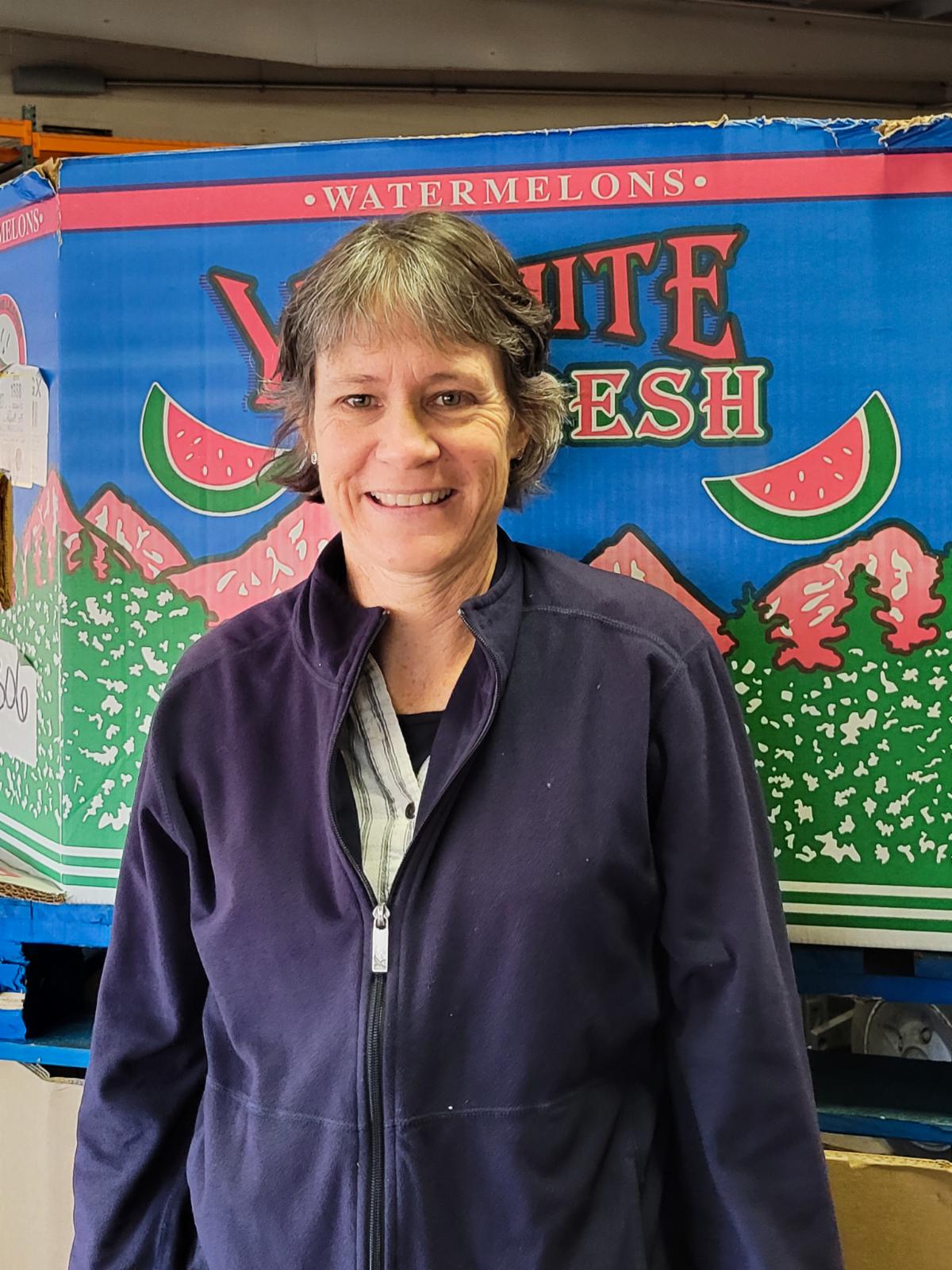 You probably recognize Stuart from a mobile distribution, although he's at the warehouse almost every week as well. Jeremy gave him the nickname "Professor Produce" and he wears it with a quiet smile and a chuckle. Stuart always has a funny observation or quiet quip to brighten our days, and he wows us with stories from his time working at the LA Zoo.